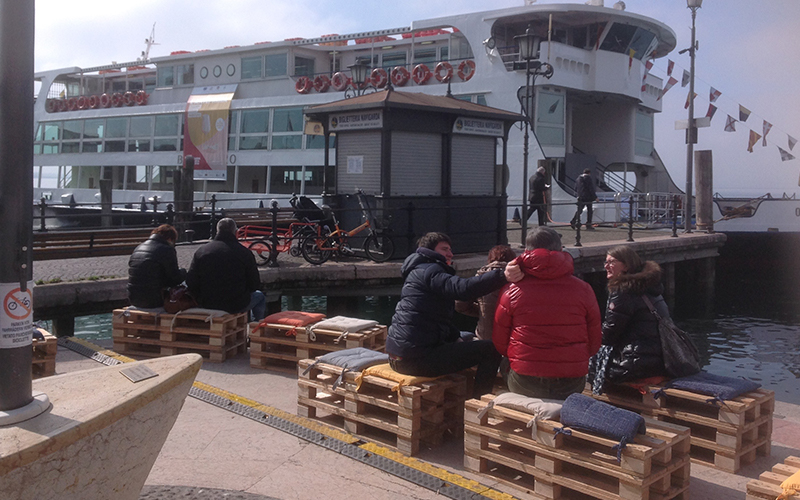 Seduta dal design moderno realizzata con bancali in legno. Una struttura in pallet versatile e pratica.