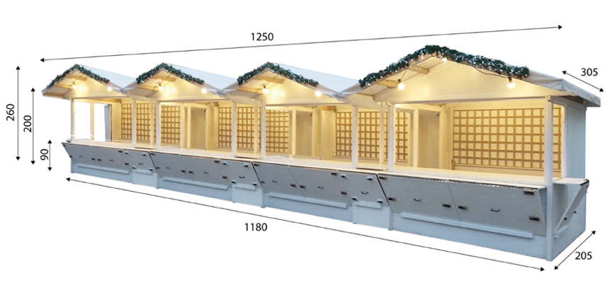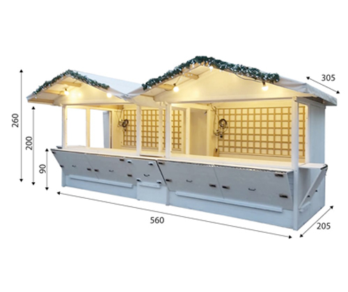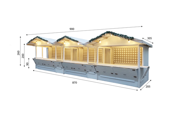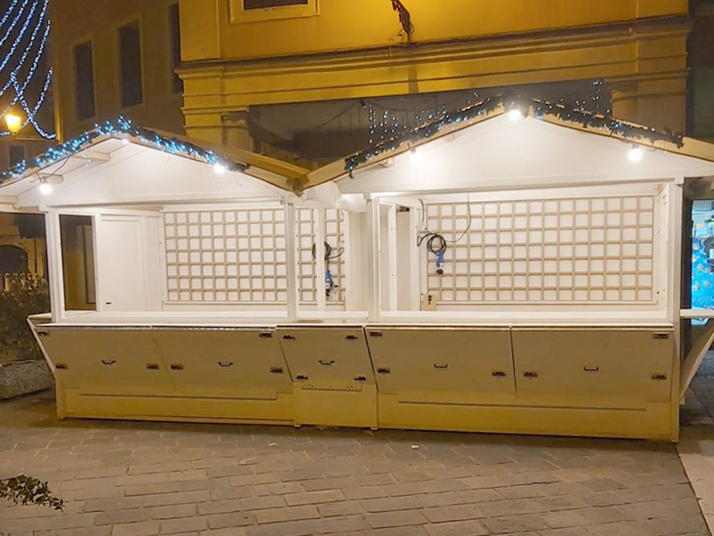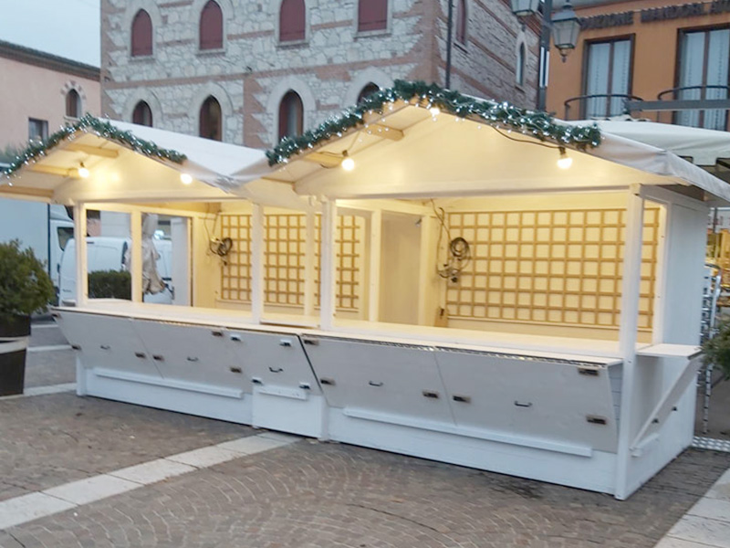Perfetta come stand o chiosco per mercatini, fiere, eventi, street-food, mostre e altre occasioni, consente di creare esposizioni ampie e luminose, ideali per la vendita e promozione di prodotti.